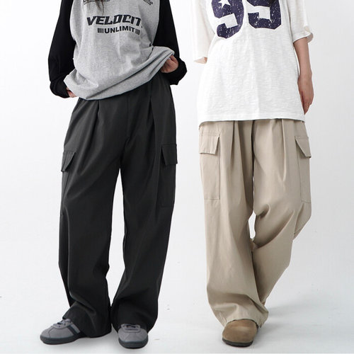 코키코키 / 길이선택/골반볼륨핏 포트 와이드 핀턱 골반 볼륨 밴딩 트레이닝 팬츠