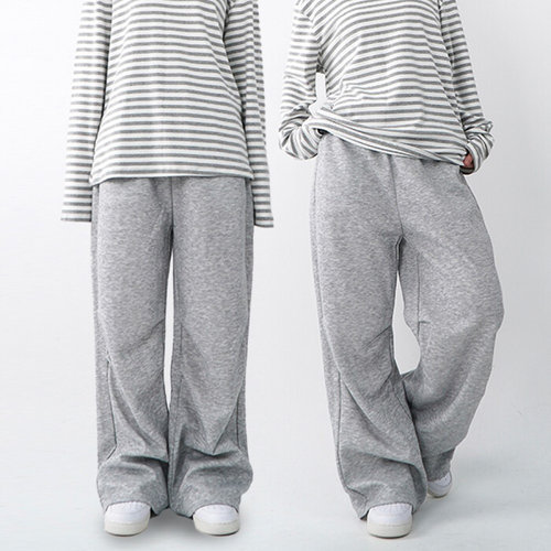 면100% 기모 와이드 핀턱 트레이닝 롱 팬츠 / 와이드 레그 허리밴딩 편한 따뜻한 겨울 운동복