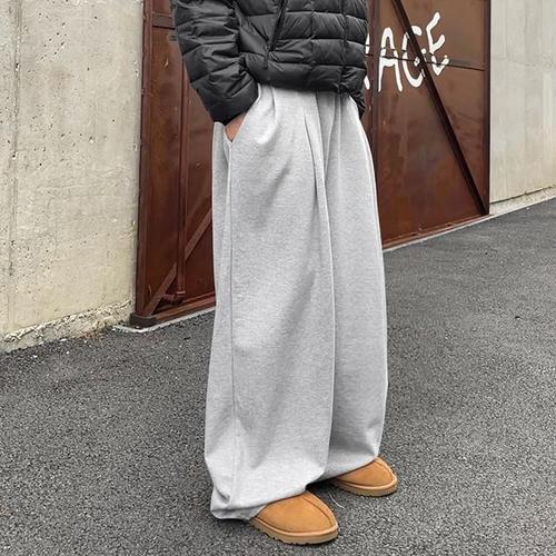 [1+1 사계절] 빠델 백 포켓 포인트 사이드핀턱 벌룬 와이드 트레이닝 스웻 커브드 팬츠 회색 트레이닝팬츠 기모 바지