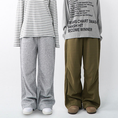 [원쁠원/당발] 쓰리턱 와이드 팬츠 봄 여름 트레이닝 앞주름 밴딩허리 핀턱 데일리 캐주얼 츄리닝바지 남녀공용