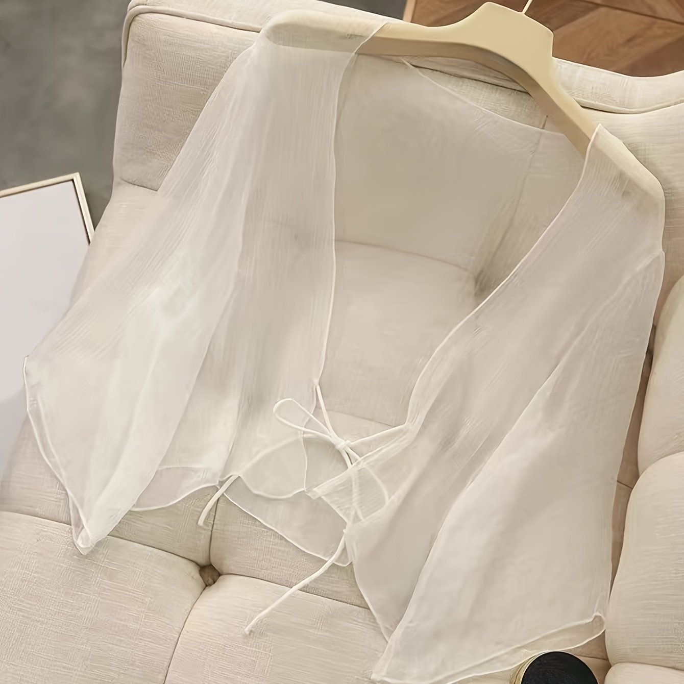 TEMU 2025년 여름에 스트랩 드레스와 입기 좋은 여성용 숏 쉬폰 숄 가디건