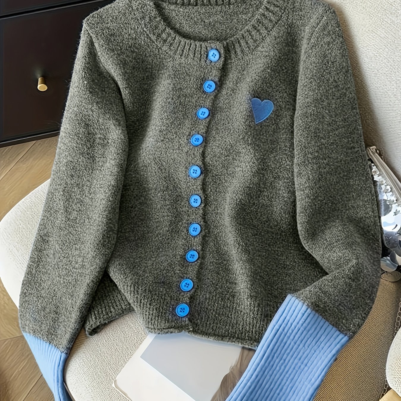TEMU 여성용 우아한 숏 가디건, 독특한 디자인의 라운드넥과 대비되는 색상의 스프링/가을에 완벽한 제품입니다.|가디건