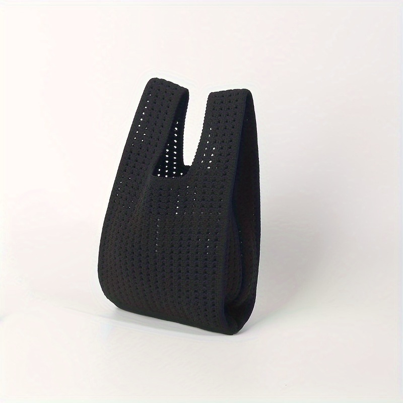 TEMU 1개 여성용 가벼운 니트 베스트백 - 통기성 오픈탑 접이식 디자인, 내구성 폴리에스터, 데일리 출퇴근, 여행, 학교, 캠핑용 솔리드 컬러 - 사계절 캐주얼 액세서리