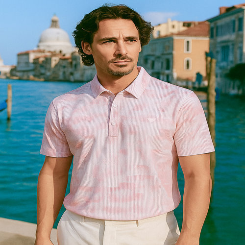 닥스 골프 남성 [스테디셀러] 핑크 로고자수 린넨혼방 반팔폴로티셔츠 (WGTS5B401P2)