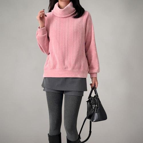 [옷자락]여성 겨울 터틀넥 핑크색 자카드 골지 티셔츠