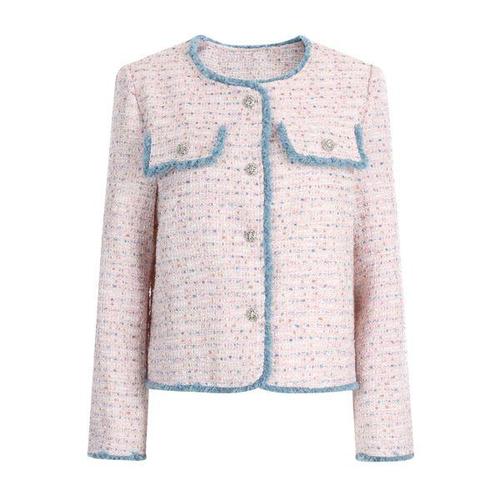 [샵앤]여성 노카라 청배색 간절기 트위드 자켓 JVL-WJK-20284-핑크