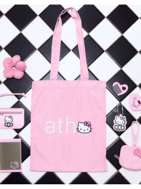 [아떼 바네사브루노 백] [26SS] [Hello Kitty x athe] 핑크 파우치 키링 & 에코백_AAWA6E015P2