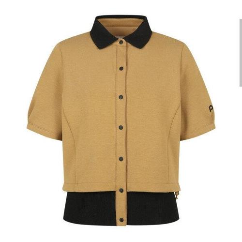 [핑]여성 시보리 배색 버튼 카라 반팔 티셔츠 121D3TF151_BG_CJ