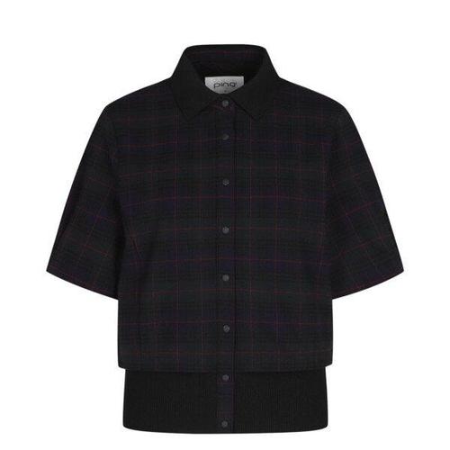 [핑]골프 여성 체크 버튼 카라 반팔 티셔츠 121D3TF152-GN_BP