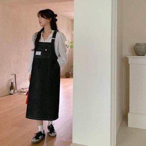 데님 하객 여성 원피스 롱니트 멜빵 뮤시란 트 WFKOIYT
