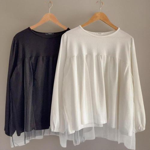 [옷자락]여성 가을 하객 패션 핀턱 퍼프 7부 라운드 티셔츠