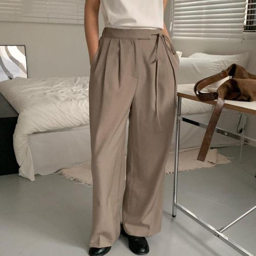 [미라클세븐]여성 가을 하객 패션 리본 끈 장식 투핀턱 와이드 팬츠