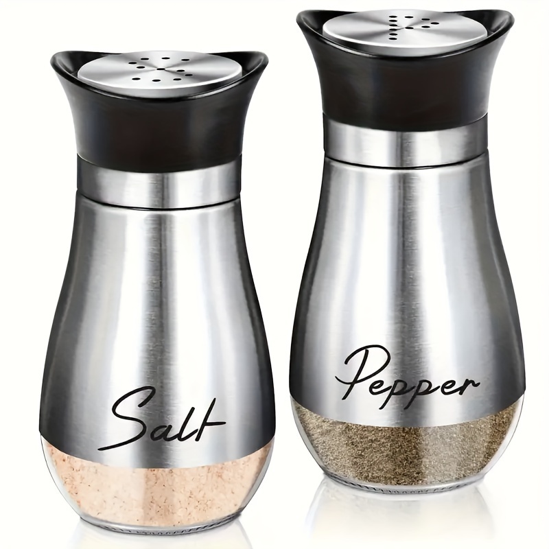 TEMU 소금 및 후추 셰이커 세트, 4 온스 (약 113.4 그램) 유리 바닥 소금 및 후추 셰이커, 스테인리스 스틸 뚜껑 포함, 주방 조리대, Rvs, 캠핑 및 바베큐에 적합합니다. 양념병. 소금 및 후추 용기.|캠핑테이블
