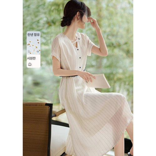 아뗄릭 루즈핏 레이스 스트라이프 주름 원피스 00775