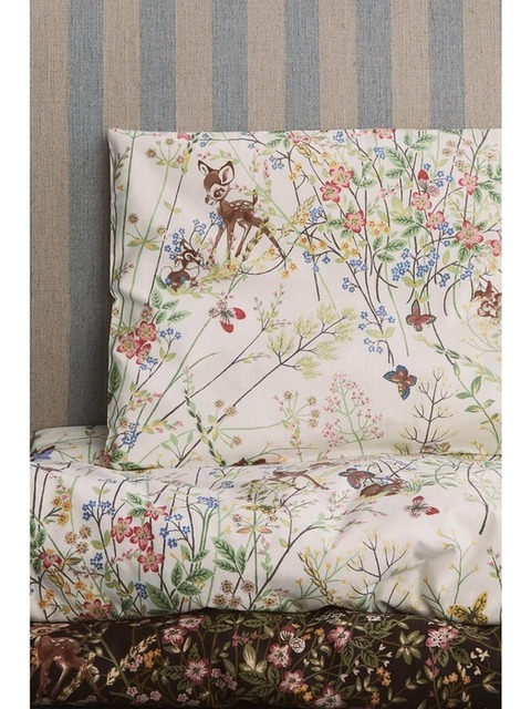 [에이치엔엠] 아기 침대 이불커버 & 베개커버 화이트/밤비 1256783001