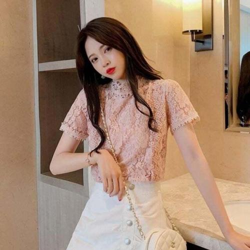 [셀럽하우스]펀칭 YMDX9820 여름 반팔 레이스 셔츠 슬림 신상 하이넥