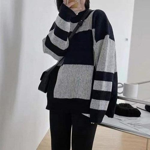 [엄지척]루즈핏 체크 하이넥 트렌드 골지 니트 데일리 긴팔 겨_19802747_667501