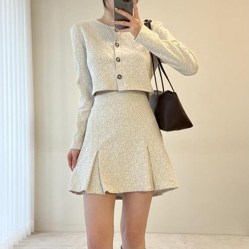 [옷자락]여자 크롭 트위드자켓 투피스 하이웨스트 스커트 세트