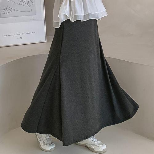 여성 데일리 하이웨스트 플레어 A라인 롱 스커트 심플 셔링 밴딩 와이드 스커트 롱치마