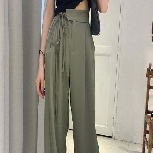[셀럽하우스]여성 GGNI5836 베이직 허리끈 하이웨스트 핀턱 슬랙스 롱팬츠
