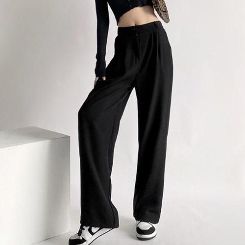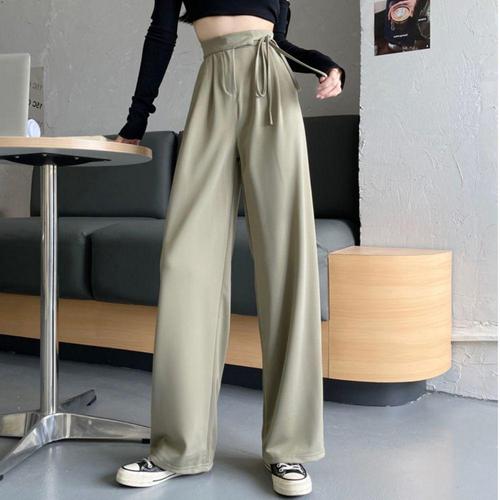 크로스보더 여성용 와이드 레그 팬츠 뱃살 커버 적합 플러스 사이즈 하이웨이스트 드레이핑감 트렌디 양복 팬츠 빅사이즈 여성용 100kg까지 착용 가능