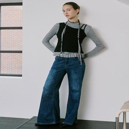 [NDJ] 하이웨스트 워싱 와이드 레그 데님팬츠