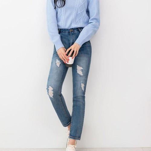 여자 하이웨스트 중청 스판 워싱 스키니 데님 청바지 WD5A04B