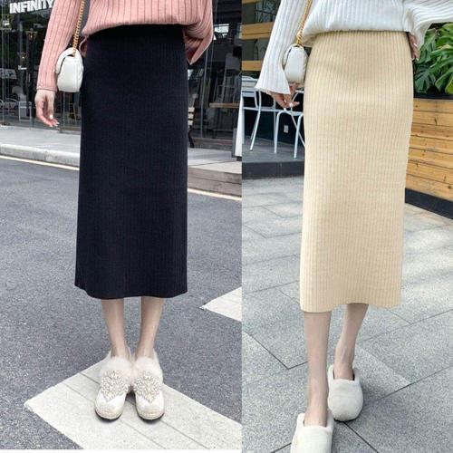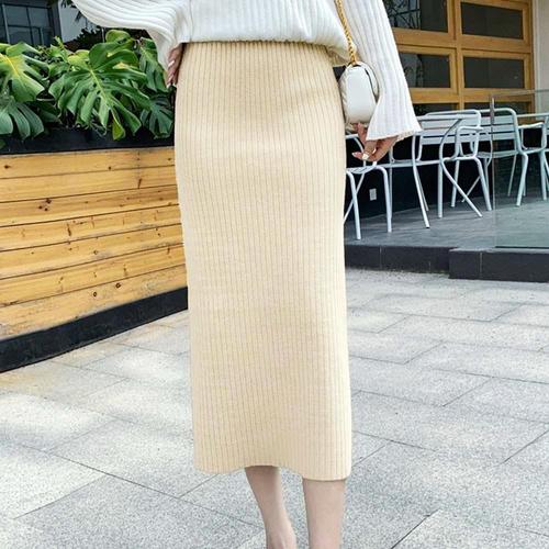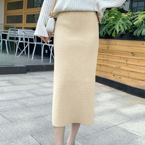 여성 가을 하이웨스트 니트 골지 H라인 롱 스커트 phX1+3XgN