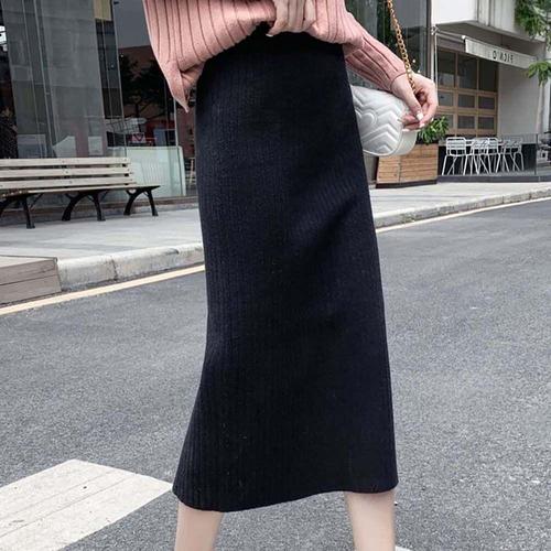 [셀럽하우스]여성 HNSA2976 가을 하이웨스트 니트 골지 H라인 롱 스커트