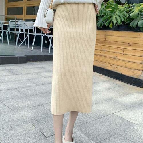 [셀럽하우스]H라인 XFTD7298 슬림핏 골지 롱 스커트 캐주얼 하이웨스트 치마