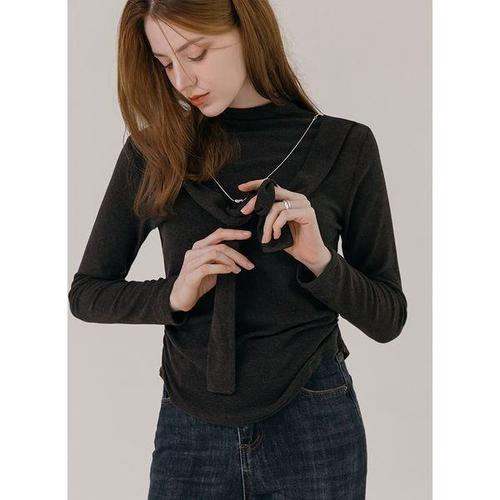 엘케이트 여자 타이블라우스 투웨이 셔링 하이넥 블라우스 LDRE001