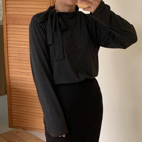[신상오픈런]|KMH214A|트넨스 볼륨 하이넥 타이 블라우스 매듭 여성_18158500_597559