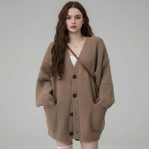[골피아]여성 도톰 하찌 니트 가디건 골지 루즈핏 체형보정 버튼형 브이넥