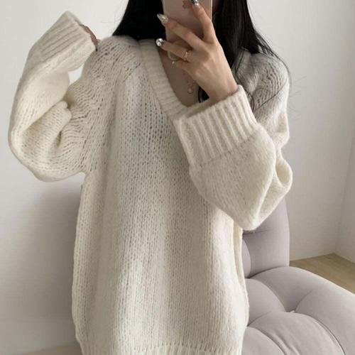 빠델 브이넥 하찌 오버핏 긴팔 니트