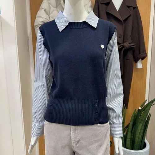 [클리지]DP01 레이어드 하트 니트 셔츠 CQ1WKT08