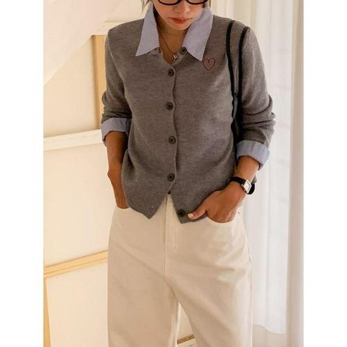 [럽스]하트자수가디건/셔츠 레이어드 니트