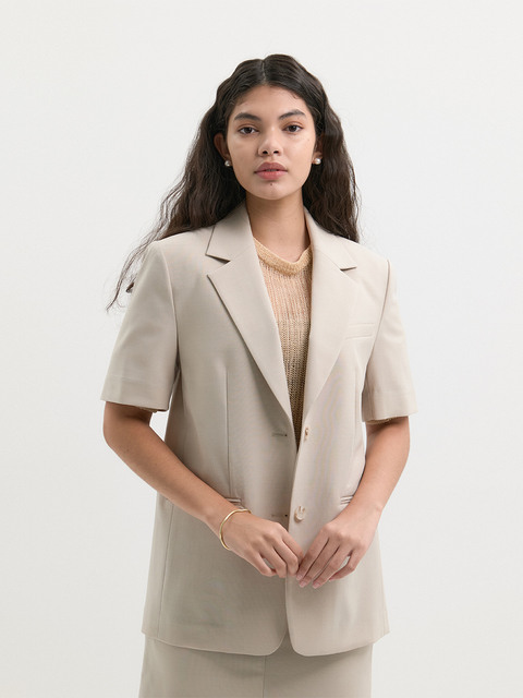 [아웃셀] 썸머울 반팔 자켓 - 베이지