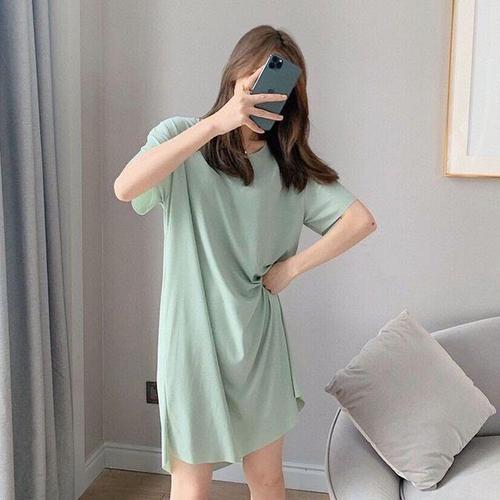여자 하프티 데일리 여름철 내추럴룩심플 릴랙스핏 원피스룩 그린