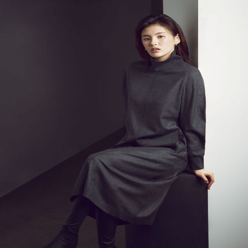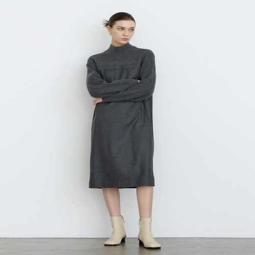 닥스 여성 [클리어런스][울] 그레이 트윌 조직감 H실루엣 하프넥 원피스 (DLDR4D901G2)