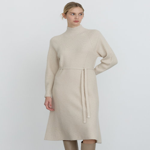 닥스 여성 [클리어런스][울] 베이지 트윌 조직감 H실루엣 하프넥 원피스 (DLDR4D901I2)