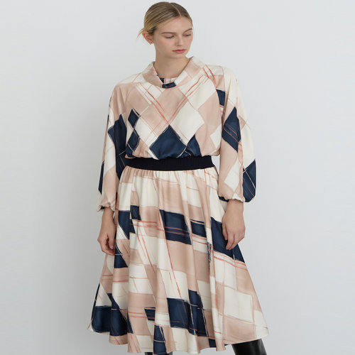 닥스 여성 [클리어런스]베이지 아가일 프린트 하프넥 원피스 (DLDR4D101I2)