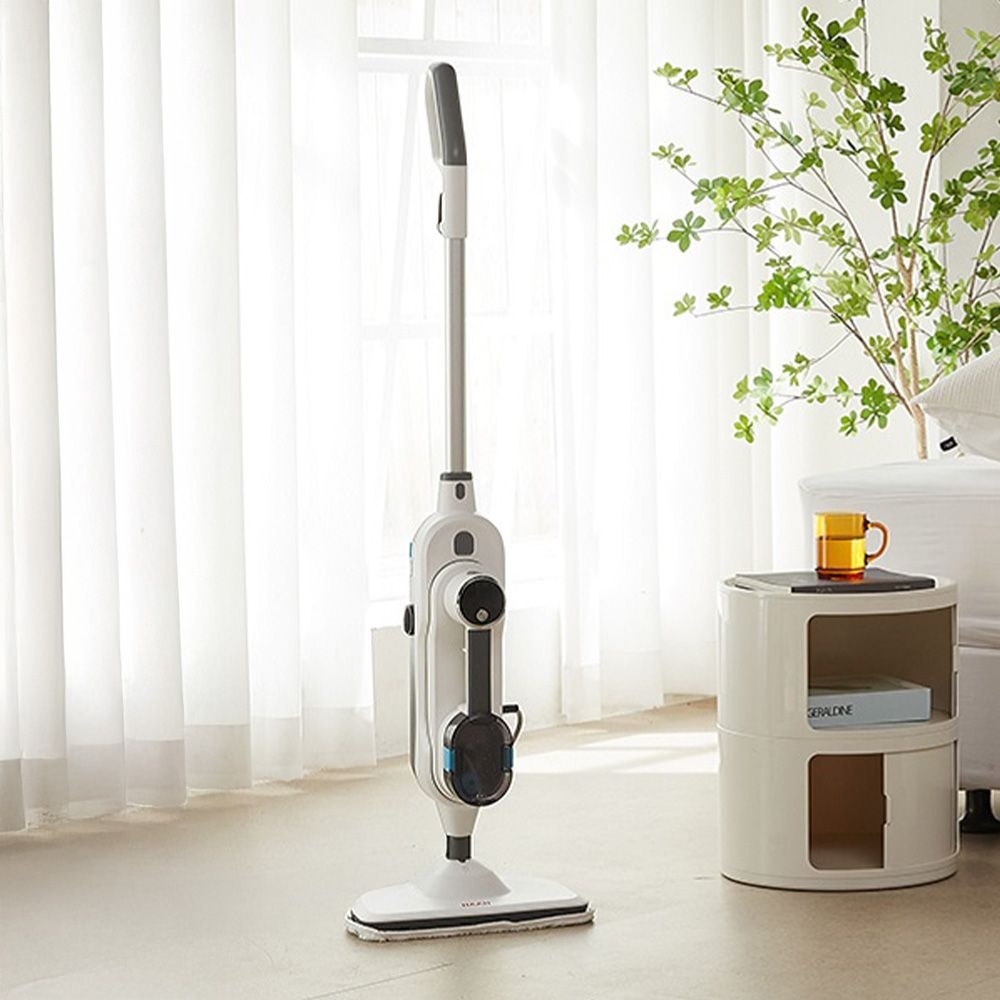 RichMagic 스팀 청소기 15초 초고속 스팀 400ml 가시성 대용량 물통1300W 파워 스팀 청소기 거치대 패드 증정, 화이트, 1개