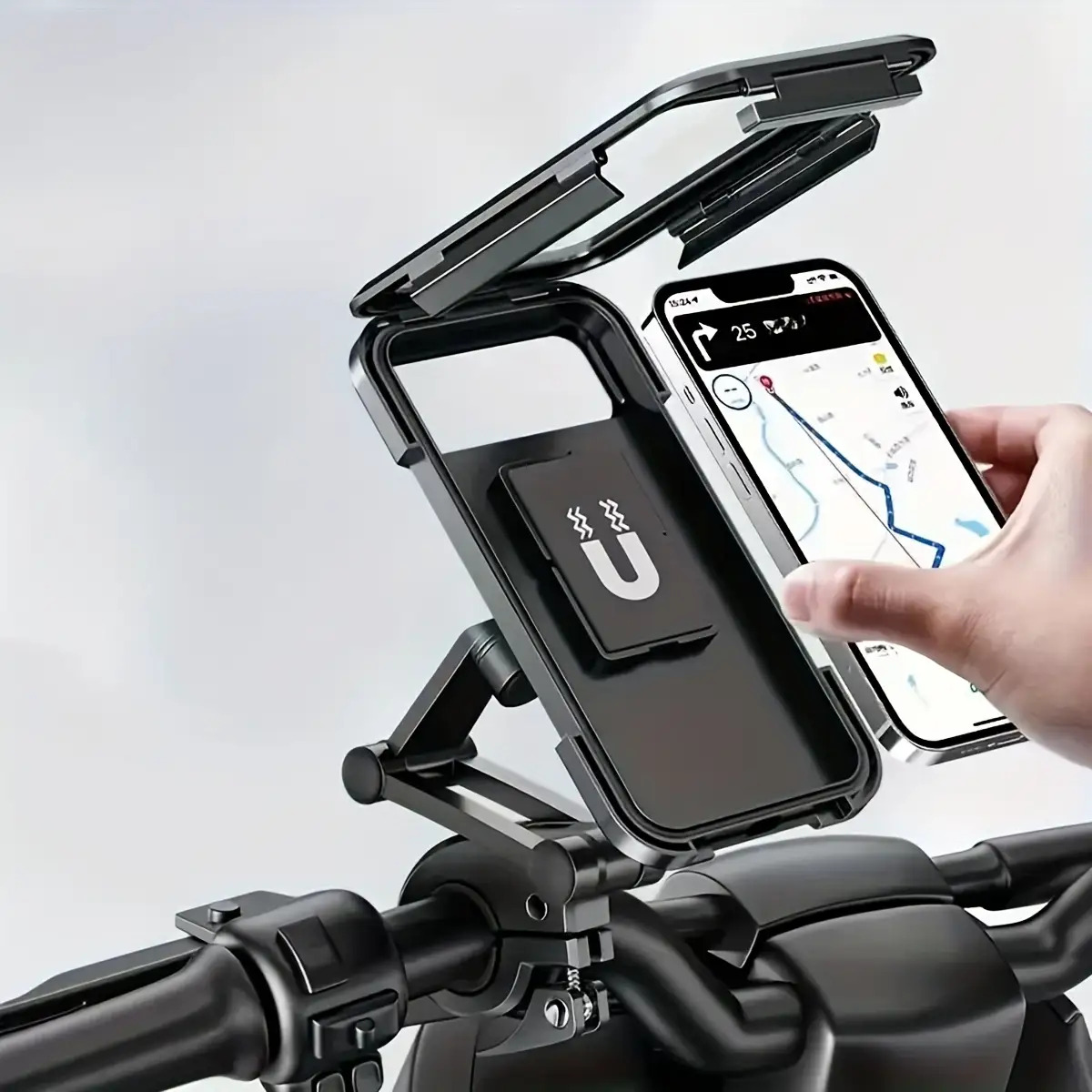 TEMU 모터사이클용 방수 폰 홀더, 터치 스크린/360° 회전이 가능한 범용 자전거 폰 마운트, 모터사이클용 폰 홀더, 모터사이클, 자전거, 유모차 핸들바에 적합, 4.0-6.8인치 폰에 적합
