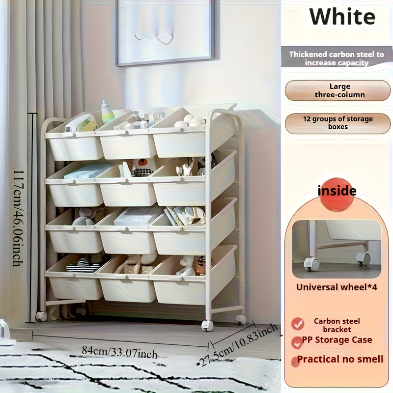 TEMU 1개 - 3/4단 스토리지 랙, 어린이 장난감 보관대, 다층 수납 바구니, 바퀴 달린 바닥 스토리지 카트, 두꺼운 플라스틱 바구니가 있는 금속 프레임, 튼튼하고 실용적, 다양한 가정 환경에 적합