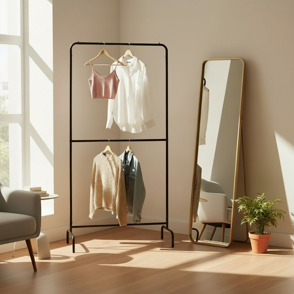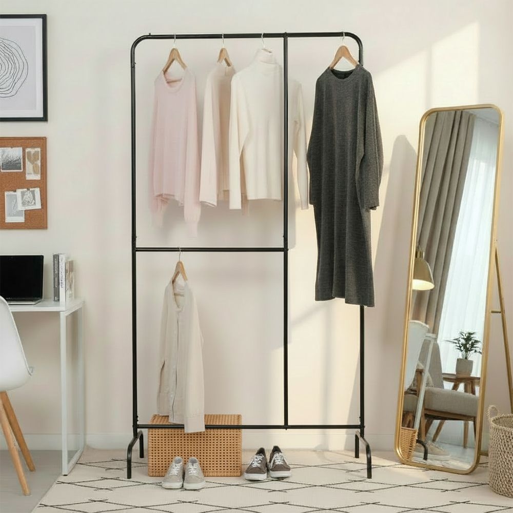 고정식 2단 행거/2단행거/왕자행거/무타공행거/드레스룸/자취방/옷정리대/옷걸이대/