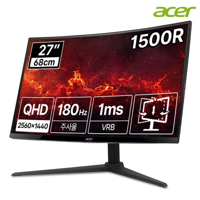 에이서 [한성] 에이서 니트로 XZ270U S3 1500R QHD 180Hz 68cm 커브드 27 게이밍 모니터 (무결점)