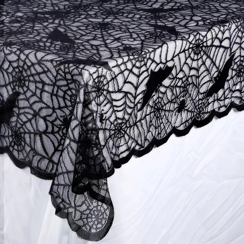 할로윈 레이스 식탁보 박쥐 그물 해골 패턴 직사각형 모양, 파티 장식, 유령의 집 호박 디자인, 1 개