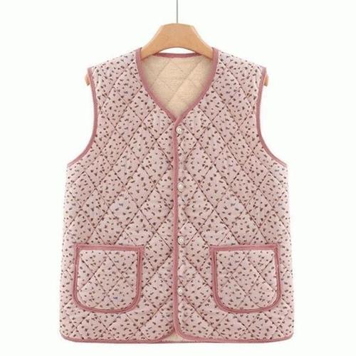 여성조끼 꽃무늬 누빔조끼 양털 기모 뽀글이 할머니조끼 겨울조끼 홈웨어