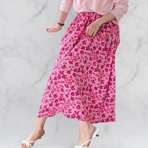 [신상오픈런]여성 할머니 스타일 꽃 패턴 플레어 빅사이즈 밴딩 롱스커트