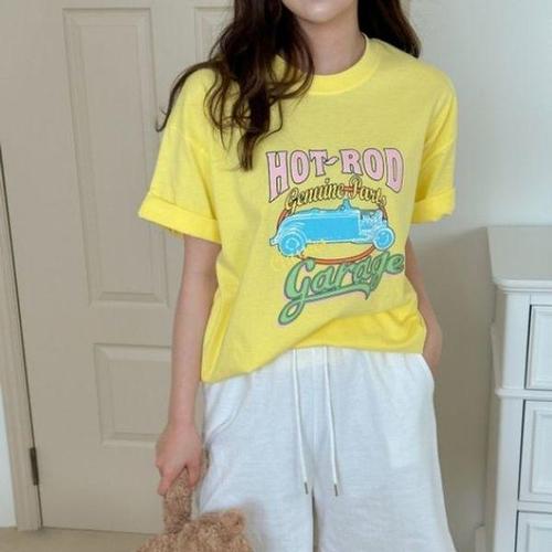 [에이치플러스몰]박스 나염 반팔 신상 핫로드 티